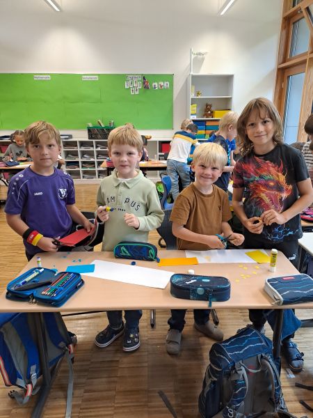 Am Freitag, den 26. September, fand das erste Treffen unserer Patenklassen statt. Die Kinder der Klassen 1 und 3 waren gespannt, einander kennenzulernen. Beim gemeinsamen Basteln fiel das schnell leicht: Es wurde viel gelacht, ausprobiert und kreativ gestaltet. Am Ende konnten sich alle über gelungene Bilder und ein schönes erstes Miteinander freuen.