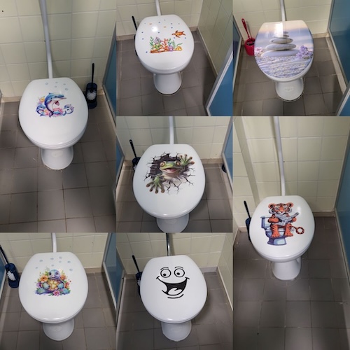 Mit Wandtattoos, bunten Klobürsten und kleinen Verbesserungen ist eine deutlich angenehmere Atmosphäre entstanden. Viele Kinder hatten zuvor berichtet, dass sie sich dort nicht mehr wohlgefühlt haben. Umso schöner ist es, dass nun alle Mitverantwortung übernommen und aktiv zur Veränderung beigetragen haben.